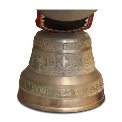 Cloche de vache de la fonderie Blondeau en collaboration avec la sellerie Houriet datée de 1983. Chaux-de-Fonds, 20ème siécle. Dimensions : D25 x H54 cm.