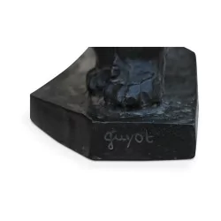 Bronze "Lionne à l affut" patine chocolat, cire perdue, signé Georges Lucien GUYOT (1885-1973), signé Cachet fondeur Susse frères / base. France, 20ème siècle Dimensions : L52 x H28 x P16 cm